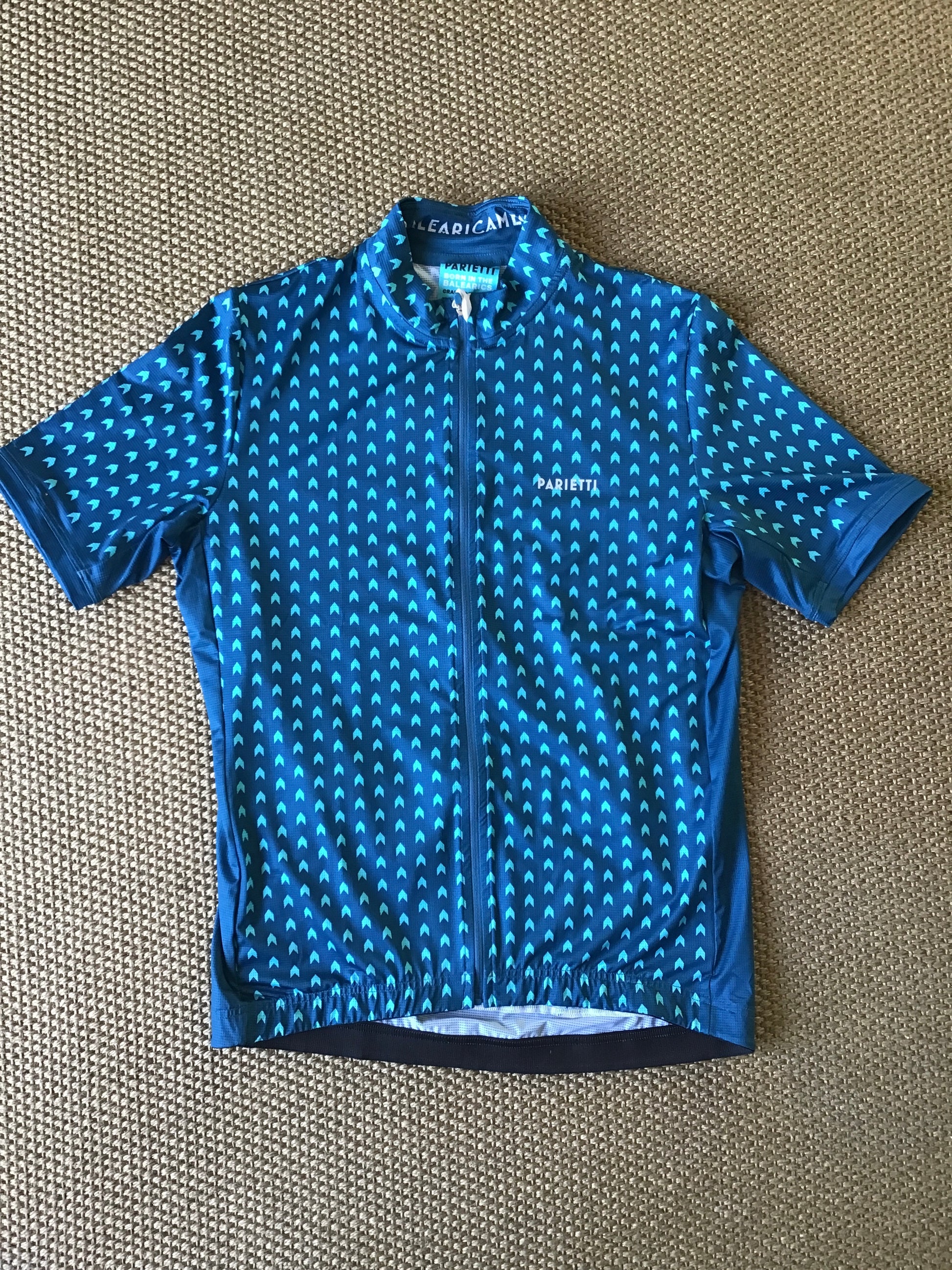 Parietti Cycling Shirt in blue with light blue arrowhead pattern